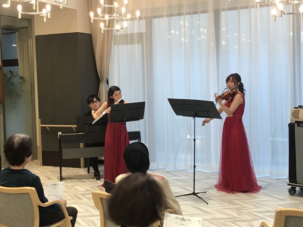 Gallery 2020.12.13 都内有料介護老人ホームにてクリスマスコンサート 2021.3.12 「La soeur」フルートデュオコンサート 秋田県湯沢市主催「七夕絵どうろう祭りコンサート」 2019年3月29日 あきた笛祭りコンサート Tokyo2020レセプションパーティー(帝国ホテル) 湯沢市主催月一コンサート『ニューイヤーコンサート2020』 都内高級老人ホーム様での訪問演奏